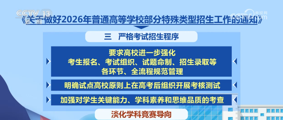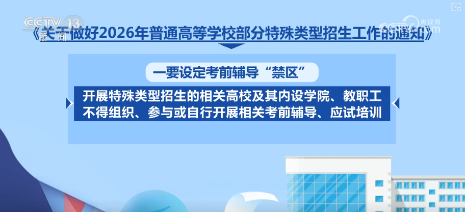 對(duì)于2026年普通高校部分特殊類型招生工作,《通知》要求,各地各有關(guān)高校建立有效監(jiān)督機(jī)制,暢通社會(huì)監(jiān)督渠道,及時(shí)公開公示有關(guān)信息,主動(dòng)接受監(jiān)督。未按要求公示的考生一律不得錄取,牢牢守住公平公正底線。